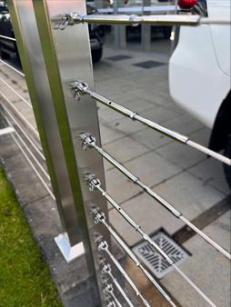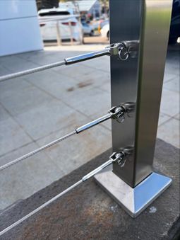 This balustrade has just been installed at the new Mona Vale Toyota using our square posts, round hand rail and wire balustrade kits. We also supplied the hydraulic swager to fix the fittings to the wire creating a seamless and neat finish.