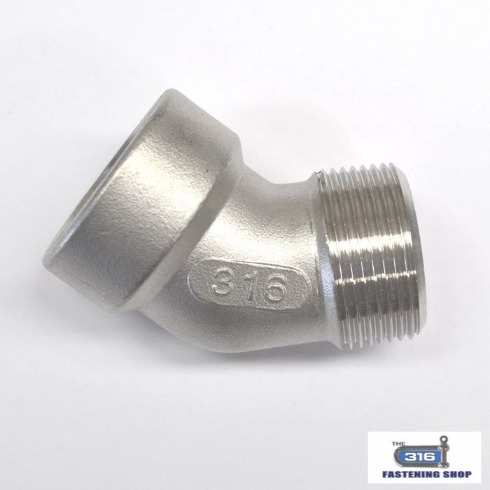 45° Stainless Steel Elbow – BSP Male x Female Threaded Plumbing Fitting for Angled Connections