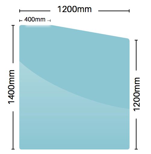 12mm Toughened Glass Panel – 1200H x 1400W – No Holes (Return/Wall Panel)