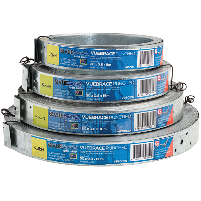 Pre-punched along its length for fast and efficient installation, it allows secure fixing with nails, screws or bolts without the need for additional drilling. Available in various widths, thicknesses and roll lengths, it offers flexibility to suit a wide range of bracing requirements.