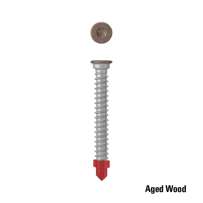 The self-drilling tip allows fast, effortless penetration into steel substrates up to 3mm thick without pre-drilling. The aged wood finish replicates the natural patina of reclaimed timber, ensuring the screws blend discreetly into decks, fences, or structural timber using aged or weathered wood.