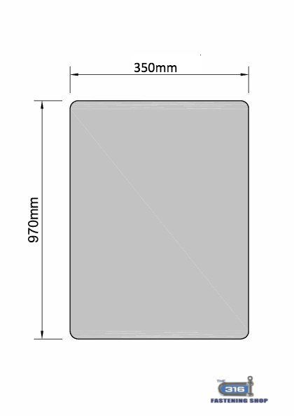 This 350mm high by 970mm wide glass balustrade panel is manufactured from premium 12mm toughened and heat soaked safety glass. Designed for use with top glaze handrail systems, where a capping rail is mounted directly on top of the glass, it provides both safety and style in compact or stepped sections of a semi-frameless balustrade layout.